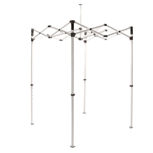 Casita Canopy Tents® are an excellent way to provide shade for outdoor events. This canopy has a 5’ x 5’ footprint with five height settings settings on the legs. Each square leg is 30mm thick. Heat Press stock canopies are available with 1 or 2 color logos. The logos are die-cut from vinyl and then imprinted onto fabric using a heat press transfer system. Choose up to 6 imprint locations (2 peaks and 4 valances).