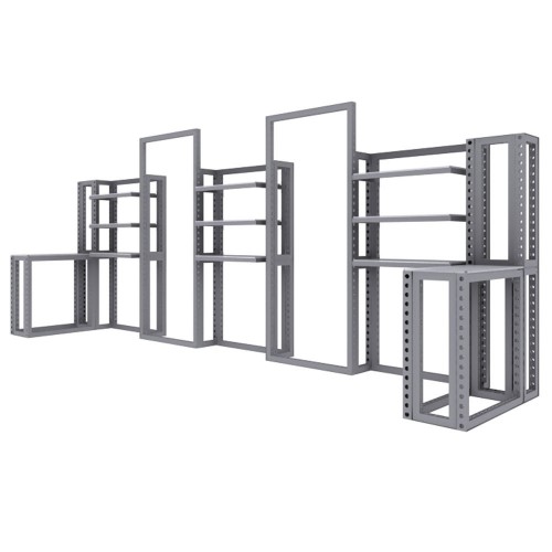 perforated modular aluminum frames. Multiple size frames connect using