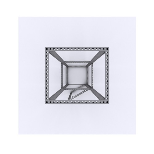 Modco Modular Display 7 Tower is a three-dimensional pre-designed 16' tower. Stylish and lively, this booth is built using tool-free perforated modular aluminum frames. Multiple size frames connect using toolless pin connectors. The tower features a door and lockset that opens a storage room. Perforations are completely covered for a flawless finish.